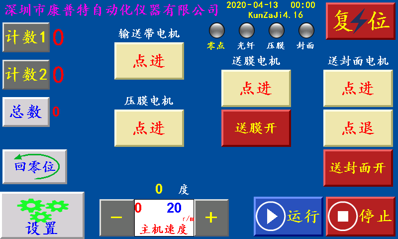 送封面回原点:在停止状态下,伺服(步进)电机回到限位原点。