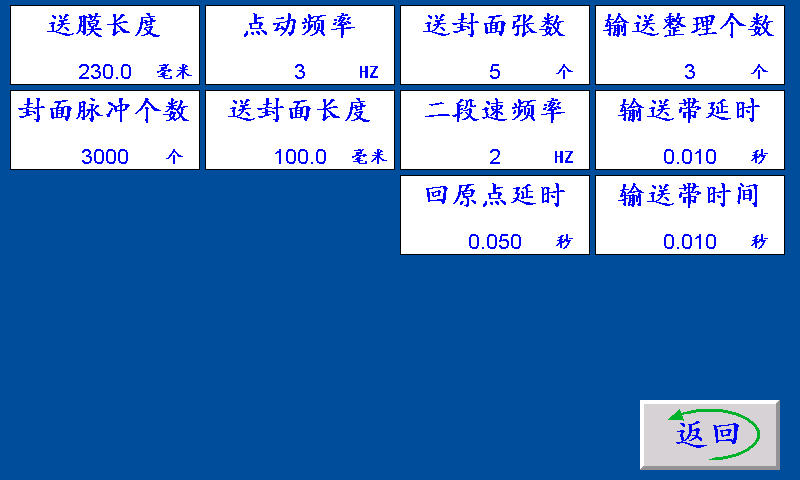 回原点延时:送封面电机送到封面后吹气信号关闭,延时回原点延时时间后,送封面电机回原点。
