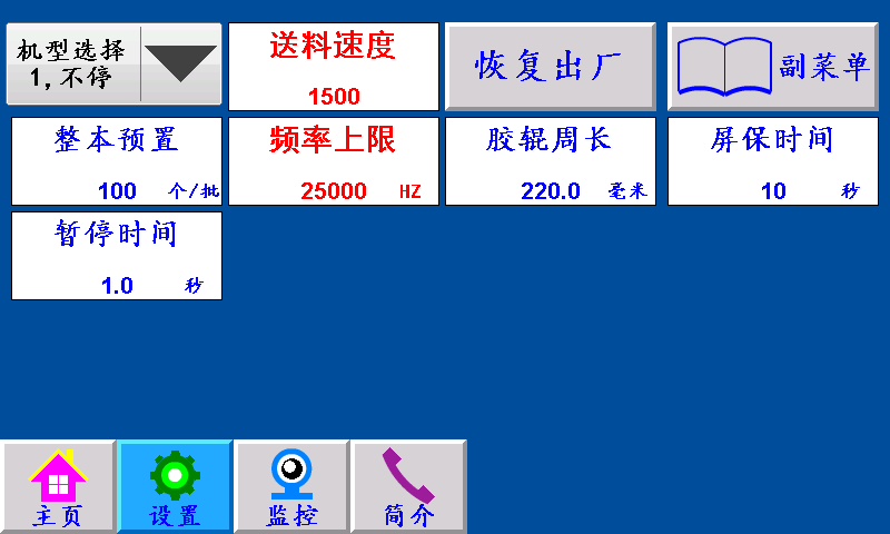 压板时间:运行状态下,料送结束时,压板信号输出的时间。