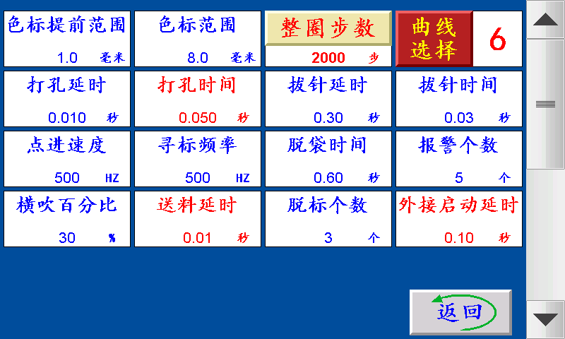 脱标个数:设定N个,制作彩色制品时,跟踪N次色标点,跟踪不住自动停机。