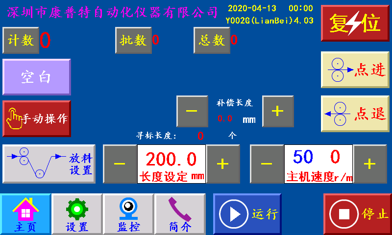 送料少走长度:主机运行过程中,料送结束后检测到补偿信号,下一次送料补偿伺服(步进)电机少走长度。